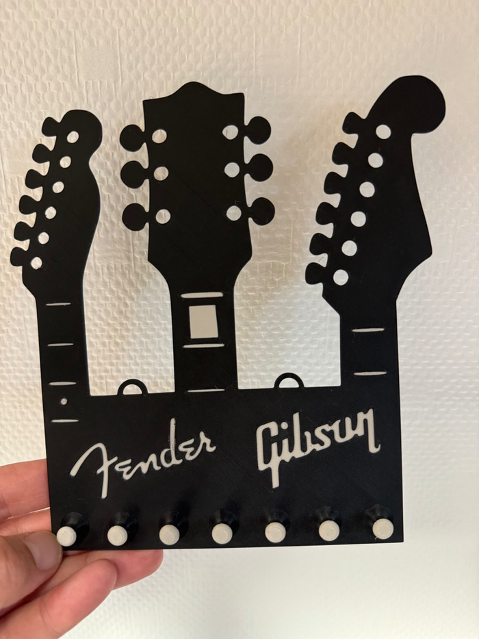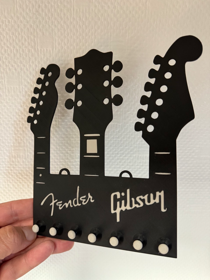 🎸 Porte-clés mural Guitare – Fender & Gibson 🎸 Idéal pour les fans de musique et de rock 🎶 ! Ce porte-clés mural original reprend les célèbres têtes de guitares Fender et Gibson – à la fois pratique et déco ! 🎨 Couleur : noir avec détails blancs 📐 Dimensions : env. 17 x 18 cm 🪝 6 crochets solides pour accrocher clés, badges ou petits objets 🛠️ Facile à fixer au mur #fender #gibson #rockdecor #musicianlife #porteclesmural #decomurale #musiquedeco #impression3D #vintedfrance #decomusique #rockaddict #cadeaumusicien #guitaraddict Impression 3D 32