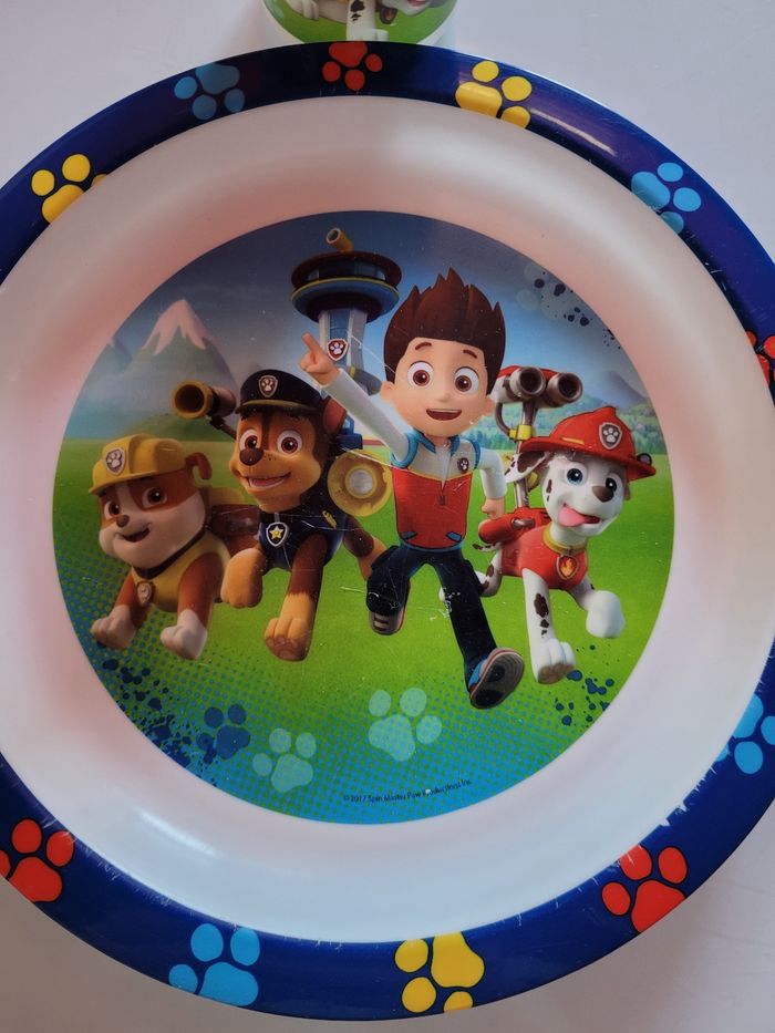 Assiette et gobelet Pat Patrouille, plus d'utilité, bien servi mais peut encore être utilisé