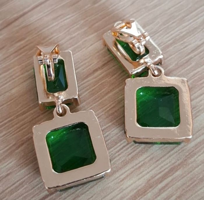 Boucle d'oreille pendante vert clips  - photo numéro 1