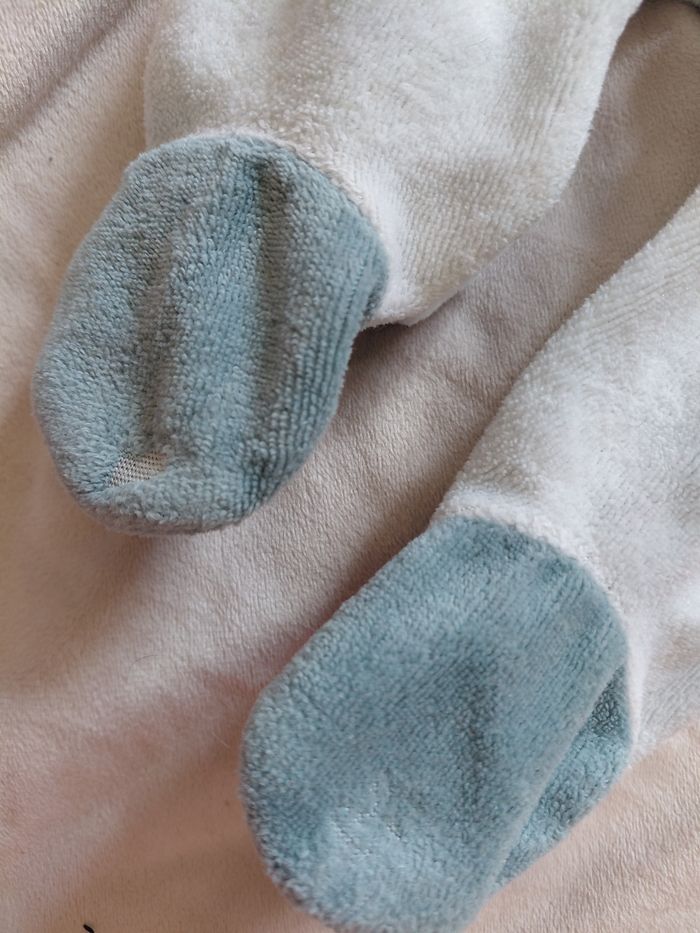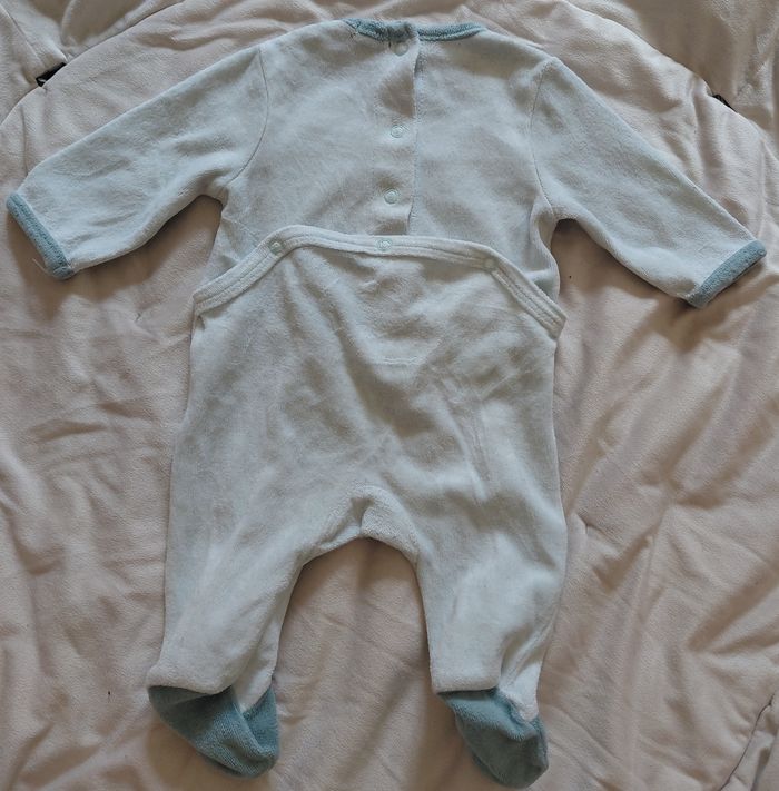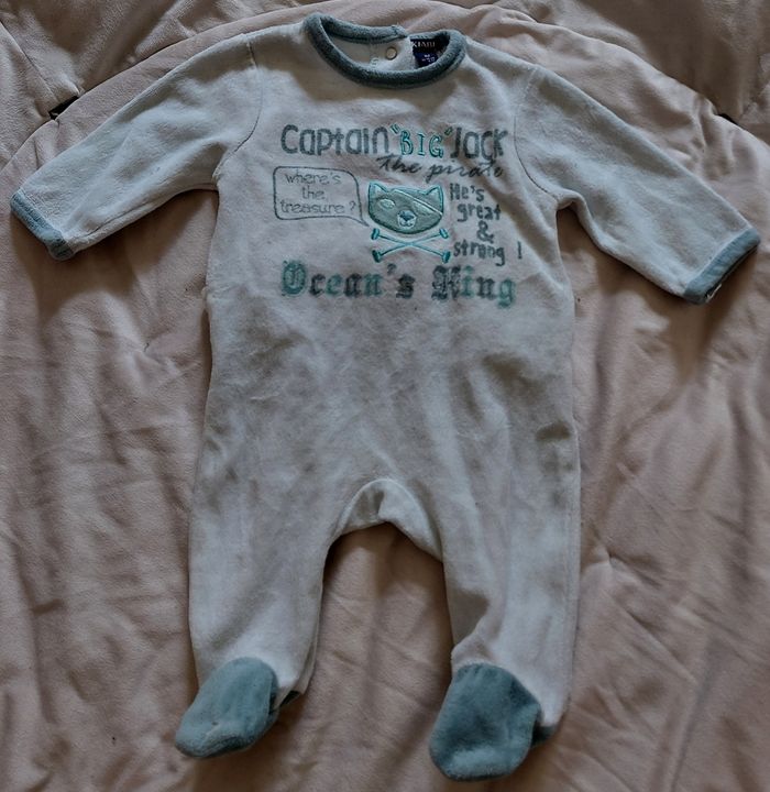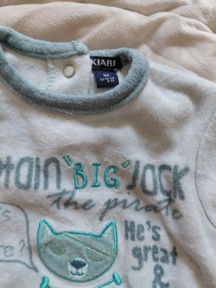 1 pyjamas 1 pièce manches longues garçon 1 mois mois très bon état (légèrement abîmé nivx pied) -Type de produit : Pyjamas -Univers : garçon -Taille : 1 mois / 52 cm -Marque(s) : kiabi -Couleur(s) : Turquoise/bleu claire/ciel Réductions de lots activé, jusqu'à-50%. A partir de 15€, prix négociable dans la limite du raisonnable. Envoie rapide dans les 24h ➡️ 📦