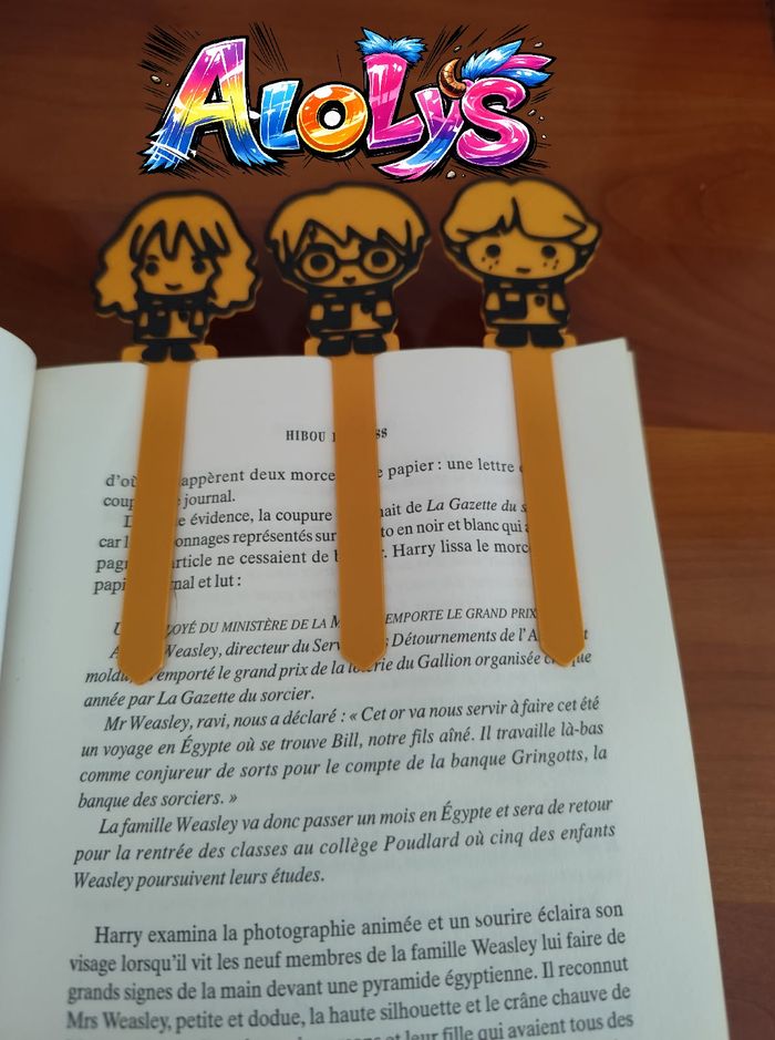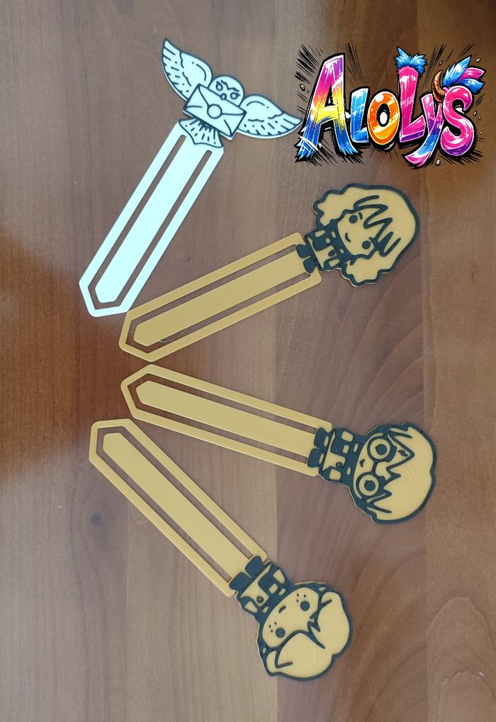 Lot de Marque-Pages – Harry Potter ✨ Ne perdez plus jamais votre page avec style ! Ces marque-pages inspirés de l’univers magique de Harry Potter vous accompagneront dans toutes vos lectures, sorcières ou moldues. 🪄 Détails du produit : • Thème : Harry Potter • Personnages :  🔹 Harry  🔹 Hermione  🔹 Ron  🔹 Hedwige avec la lettre de Poudlard ! • Taille : 14 cm de long • Fins et solides, parfaits pour tous types de livres 🎁 Idéal pour : • Fan de lecture & de Poudlard • Cadeau original pour Potterhead • Collection ou usage quotidien 🧙♀️ Vendu à l’unité ou en lot – me contacter pour composer votre pack perso ! #HarryPotter #MarquePage #LectureMagique #CadeauGeek #Potterhead #AccessoireLecture #Impression3D #Dobby #Hibou #Hermione Impression 3D 47