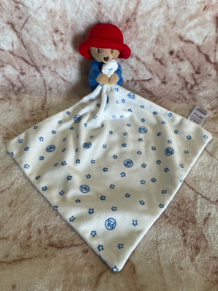 Doudou Ours Paddington bleu rouge mouchoir M&S Marks et Spencer - photo numéro 1