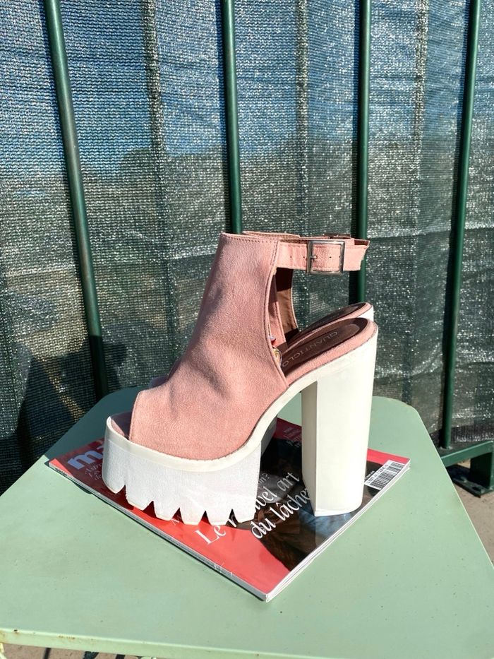Sandales à talons et plate-formes en daim rose Quanticlo - photo numéro 5