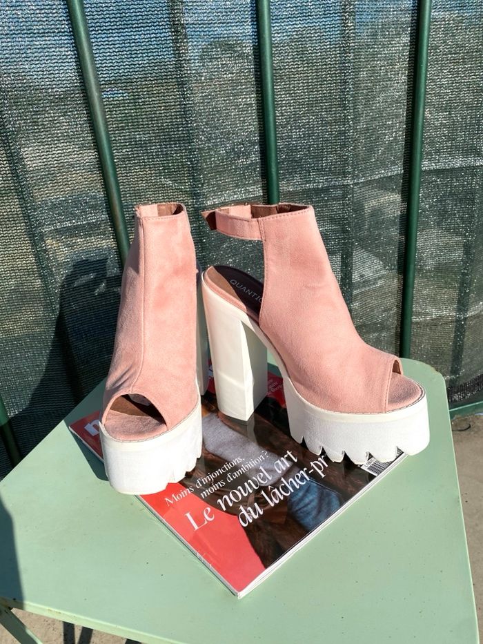 Sandales à talons et plate-formes en daim rose Quanticlo - photo numéro 1