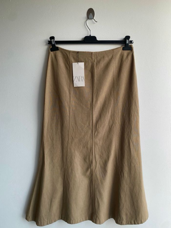 Magnifique tailleur Zara en lin vert kaki Ensemble coordonnés; jupe longue + gilet Taille M 38 Neuf avec étiquette. Prix d’achat 35,95€ + 35,95€ soit 71,90€.