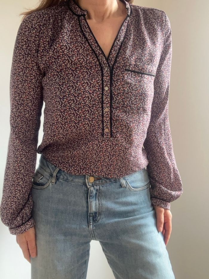 Blouse légère Pimkie Taille S Imprimé de couleur bleu marine, rose, blanc et noir Peu porté Dimensions en photo