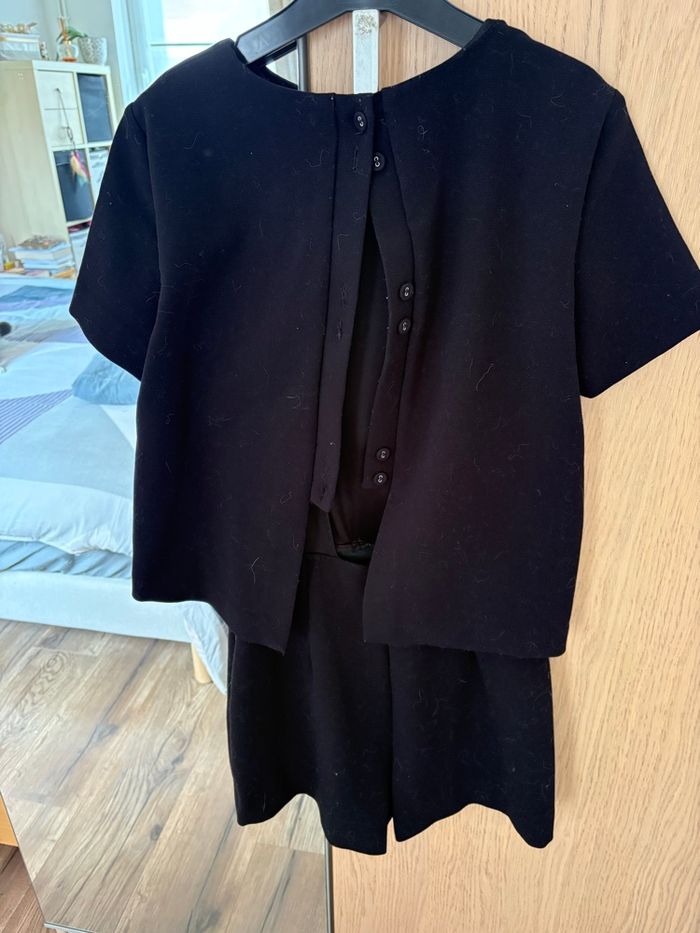 Combi short en lainage noir Taille 14 ans ou XS Se ferme au dos du short par une fermeture éclair et au dos par des petits boutons elegants