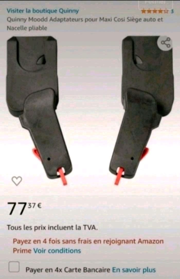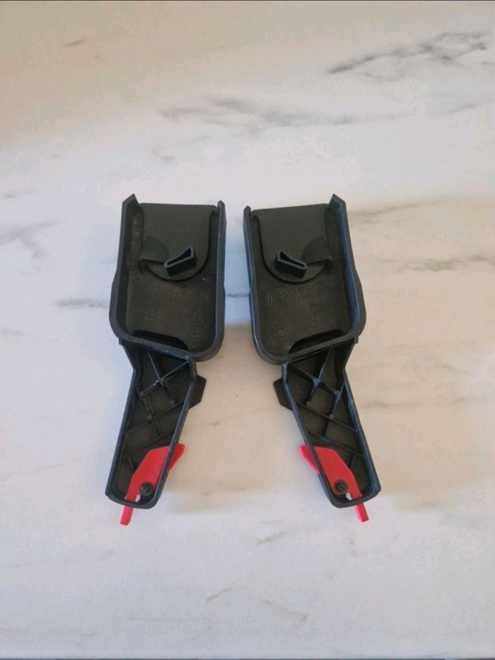 A vendre une paire d'adaptateur ( fixation, modulo clip, attaches rapide, ) permettent de fixer le cosy ( siège auto) ou la nacelle ( couffin) pliable Zoé sur la structure de la poussette Marque Quinny Modèle Mood