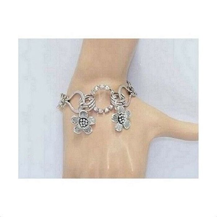 Bracelet Breloques Métal Argenté, Nacre & Strass Article neuf et emballé