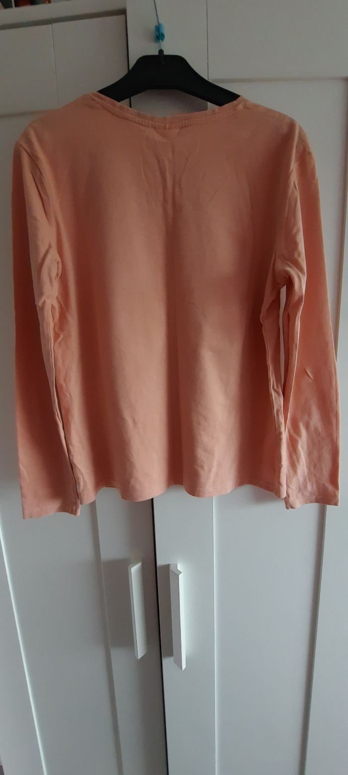 T-shirt manches longues saumon clair, "Fun" en velours, très bon état