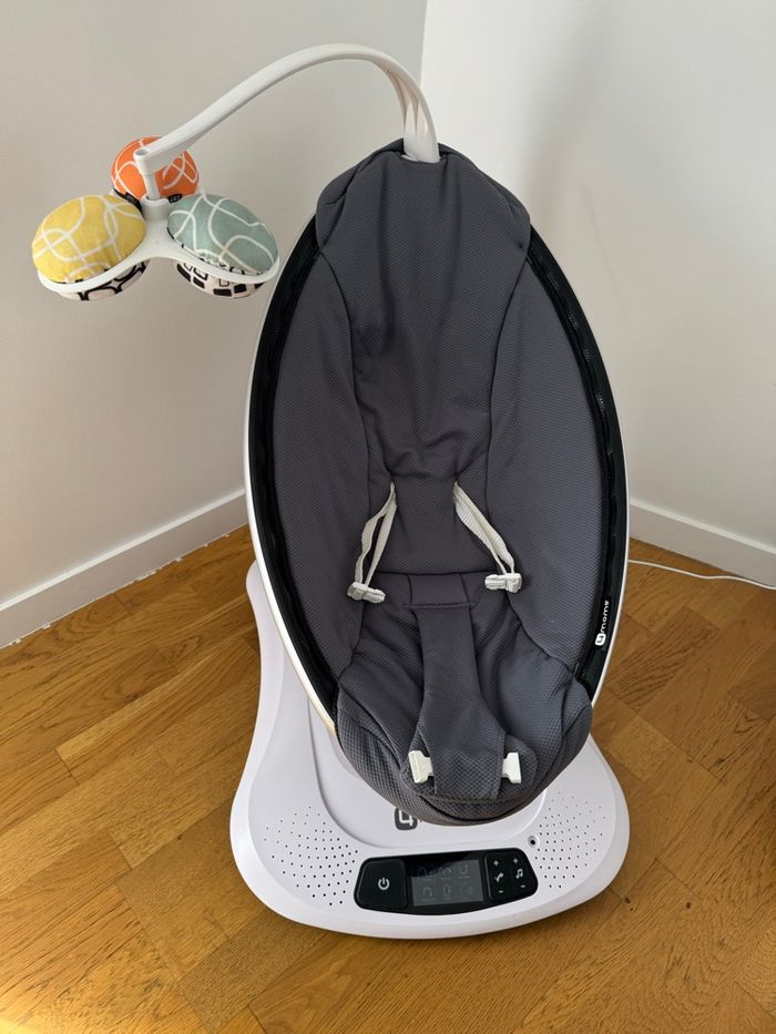 Balancelle en excellent état ! Elle reproduit les mouvements naturels des parents et peut se commande par application mobile - De la naissance jusqu'à 9 kg environ (une fois que l’enfant sait se tenir debout) - Différents niveaux d’inclinaisons du siège ​- 5 différents modes de mouvement : voyage en voiture, Kangourou, bercement au rythme des vagues, balançoire... - 5 niveaux de vitesse - 4 sons naturels apaisants pour bébé - Connexion Bluetooth permettant de contrôler intégralement la balancelle depuis votre smartphone - Prise MP3 pour diffuser de la musique - Balles de jeu interactives et réversibles pour l'éveil de bébé - Housse de siège amovible et lavable à la machine