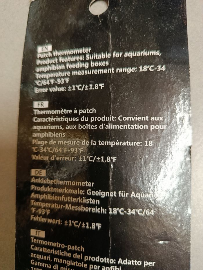Thermomètre en patch collant pour vivarium neuf