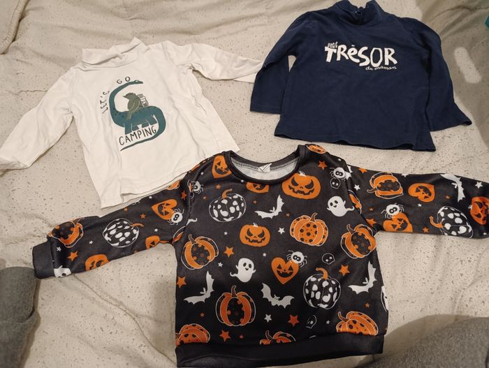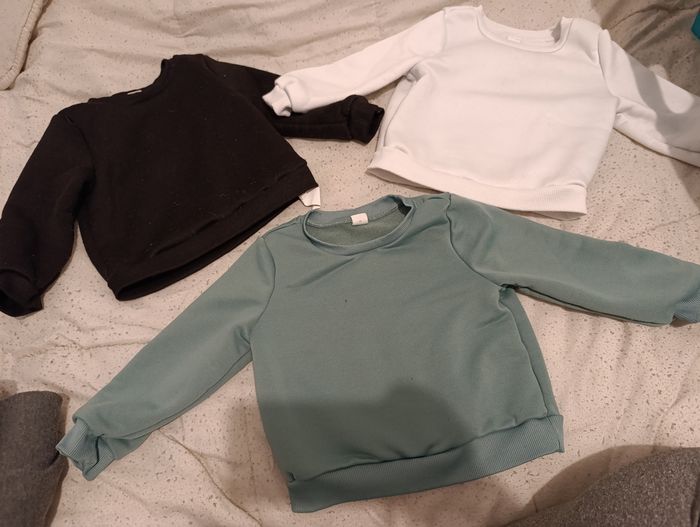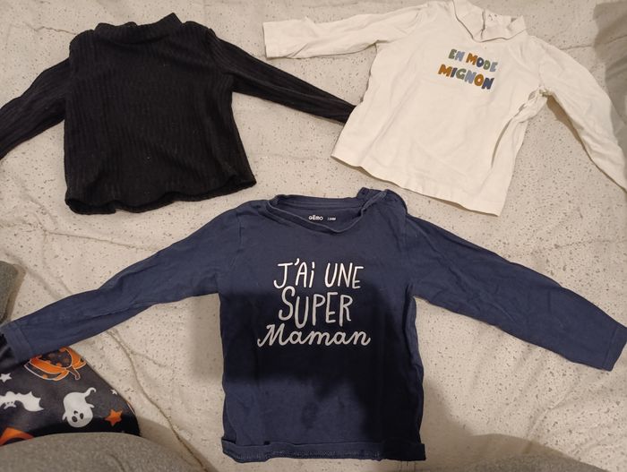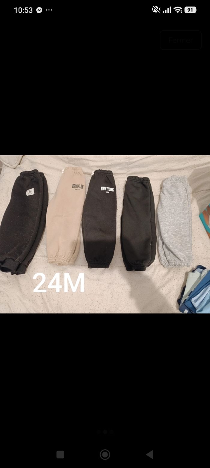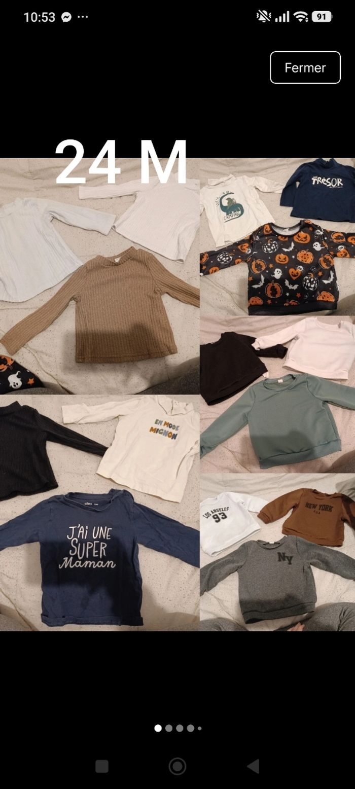 Lot de plusieurs pantalons et pulls de taille 24 mois Ils en a 3 qui sont tâchées je les offres