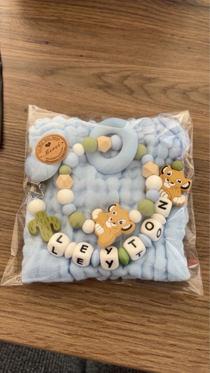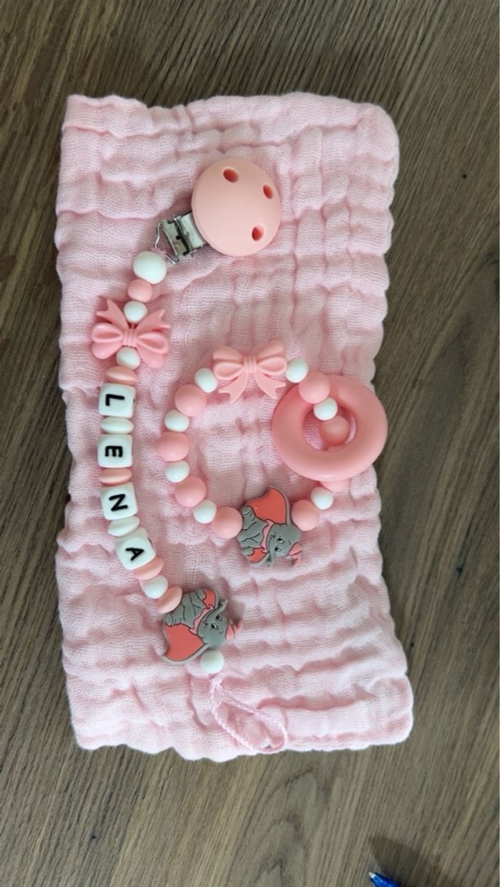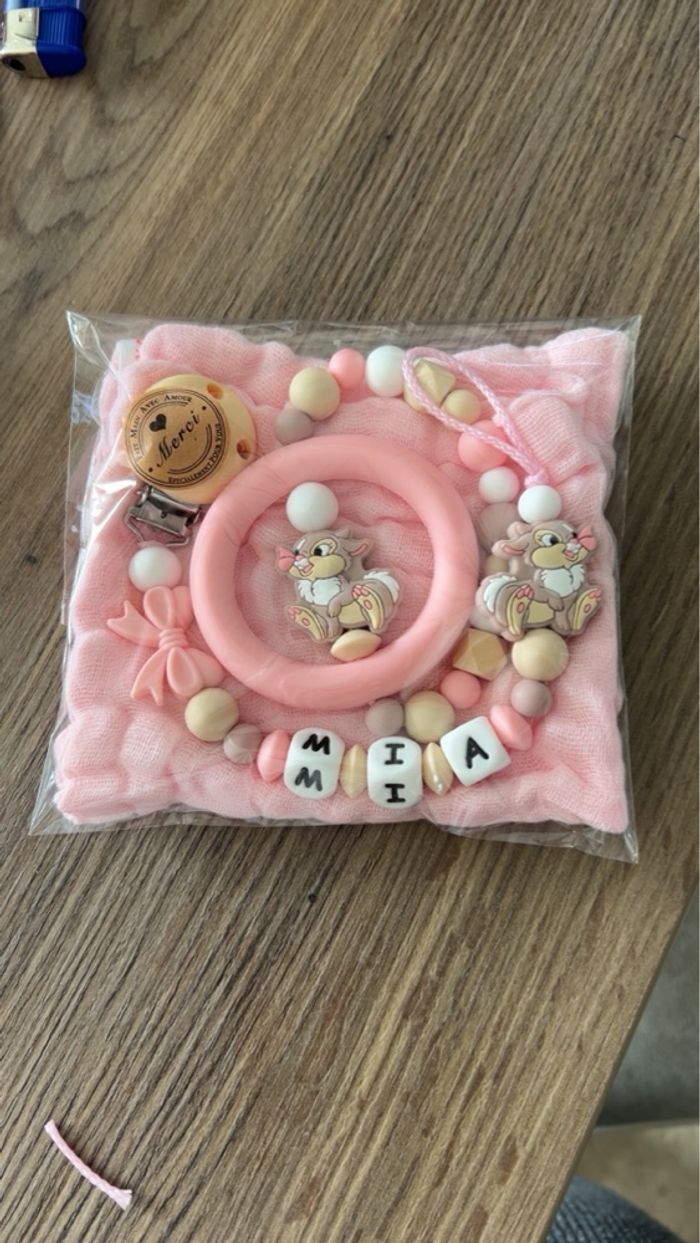 Attache, anneau et petit doudou simple unis , plusieurs modèles disponibles sur demande .
