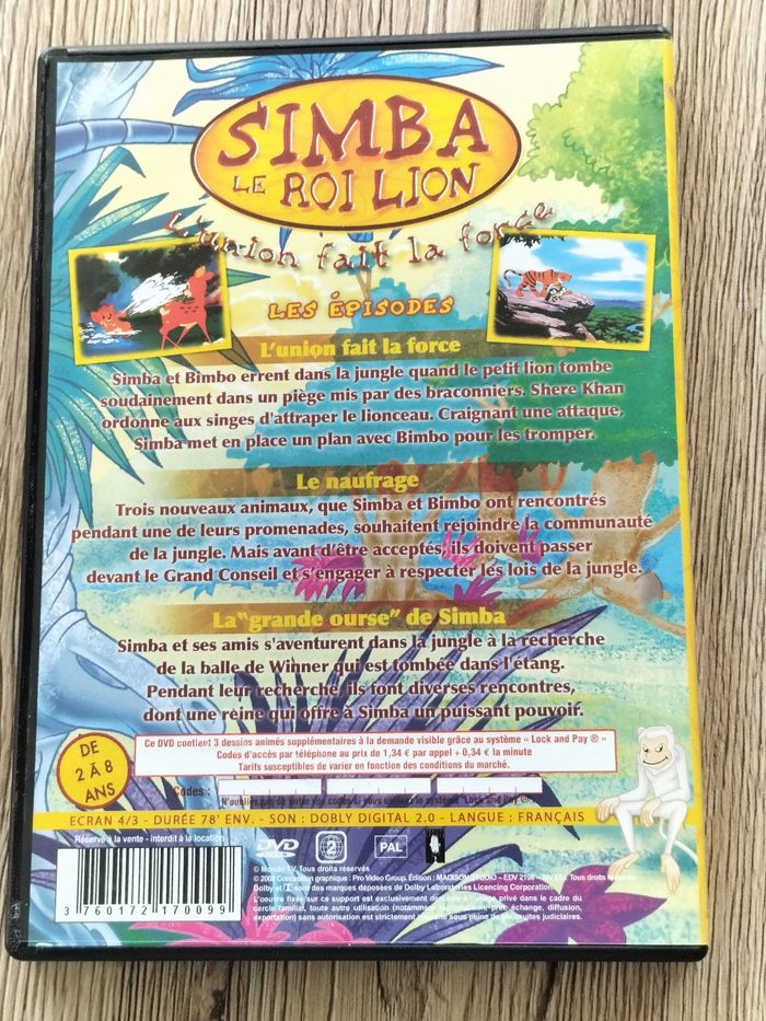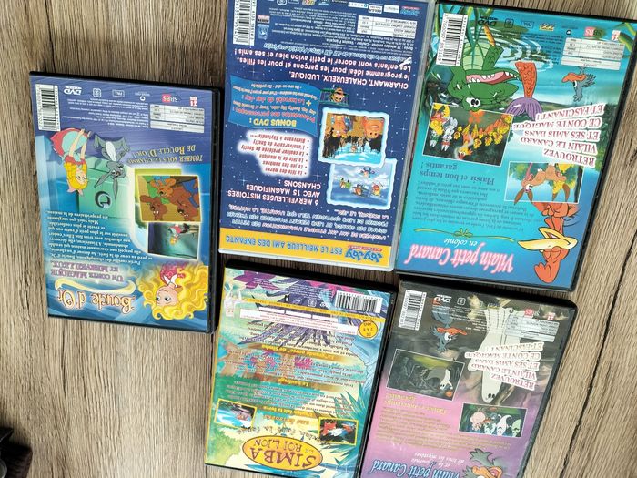 Lot comprenant 5 DVDS 2 du Vilain petit canard 1 Jay Jay le petit avion 1 Simba le roi lion Boucle d'or En très bon état