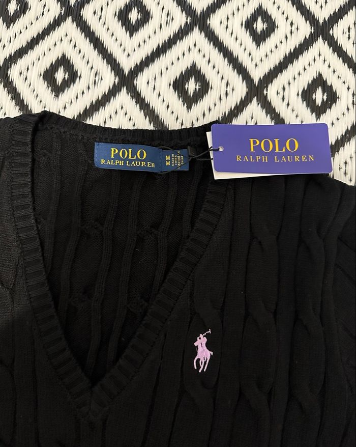 Polo Ralph Lauren Sweater col en V, jamais porté, étiquette encore attachée 🏷️✨ Taille : M Si vous avez la moindre question, n’hésitez surtout pas à me contacter ! 💬❓ Envoi ultra rapide, prête à partir ! 🚚⚡