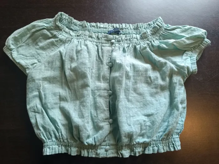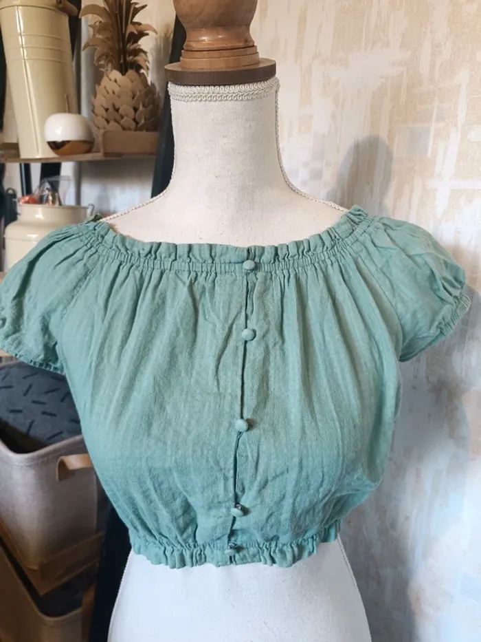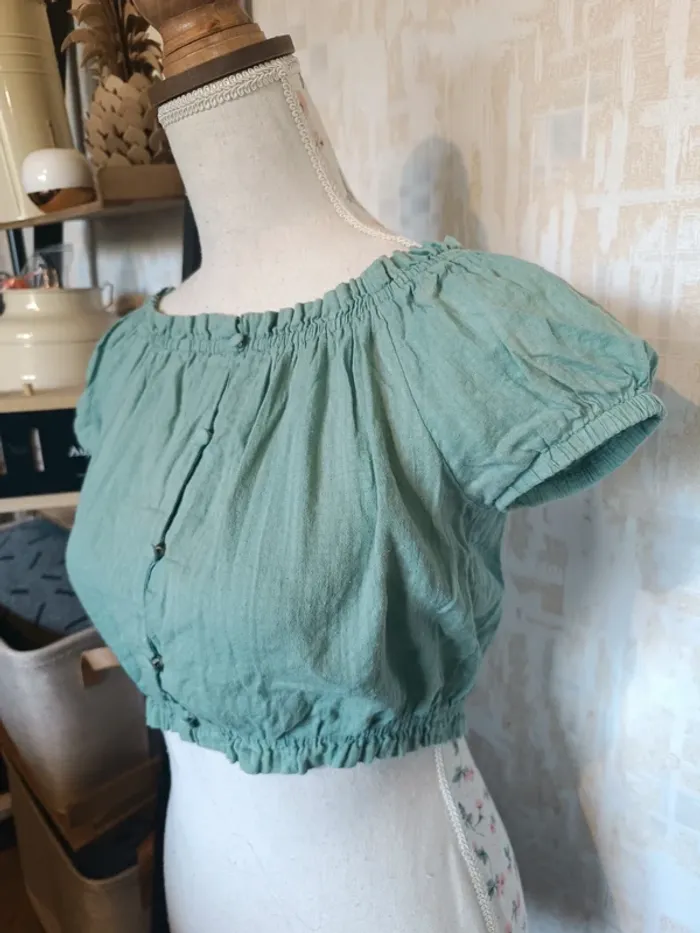 Haut KIABI Vert Manches courtes ballons Effet boutonnée sur le devant TAILLE S / 16 ANS TRES BON ETAT Allez voir mes autres ventes!