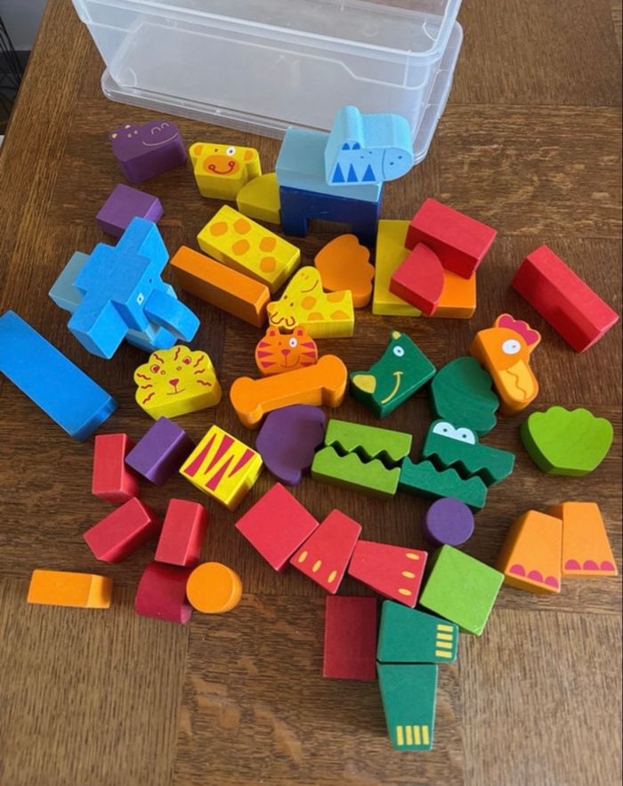 Empilement Construction Animaux 19 têtes différentes Très bon état Envoyé dans une boîte de rangement