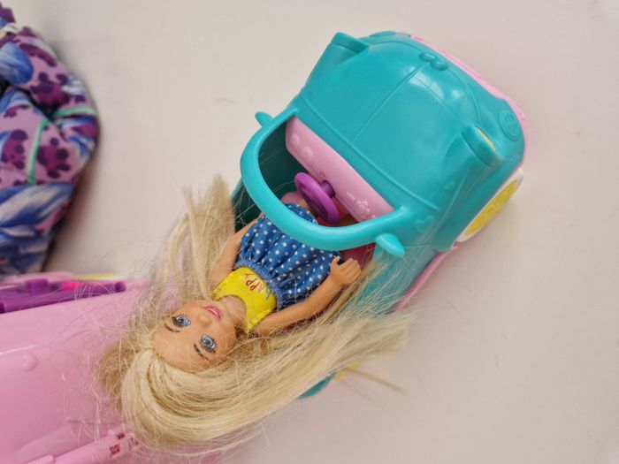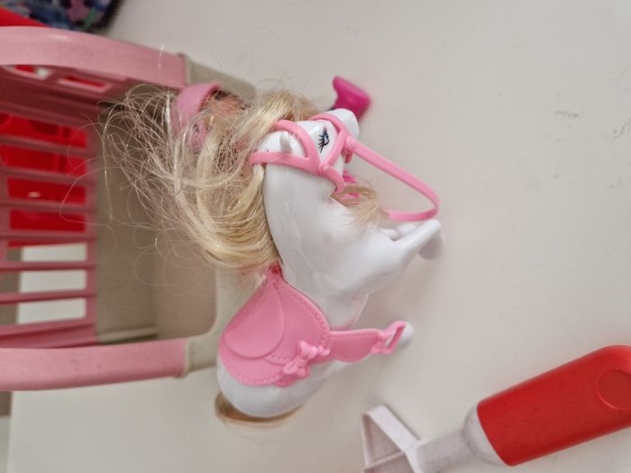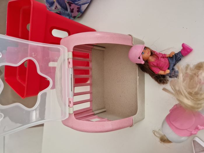 Vends un ensemble de plusieurs jouets pour fille. Cela comprend une voiture avec sa caravane et sa pilote, un box avec son petit cheval et sa cavalière, un petit chariot et d'autres petits jouets. Le tout est en très bon état. Prix de l'ensemble :7 euros. Je vends d'autres jouets et affaires, n'hésitez pas à me demander si besoin.
