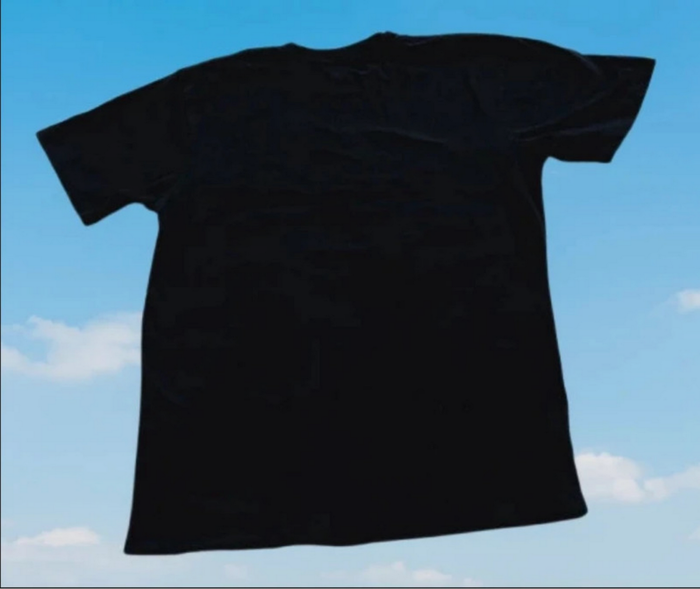 T-shirt noir manches courtes 100% coton . Epaule à épaule 43 cm, aisselle à aisselle 50 cm, longueur 72 cm .Jamais porté