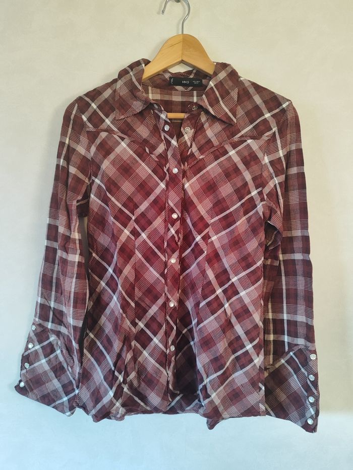 Chemise à carreaux bordeaux style western cowboy Mango taille S