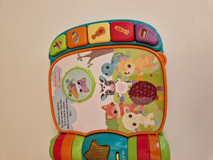 Vends un livre musical de Vtech. Très bon état de fonctionnement et comme neuf. Prix : 5 euros. Je vends d'autres jouets et affaires, n'hésitez pas à me demander si besoin.