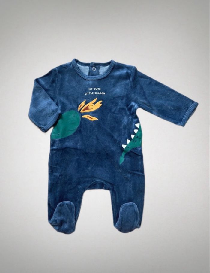 Pyjama Taille 3 mois Garçon Boutons pression derrière Porté 2 fois seulement aucun défaut Motifs dragon / my cute little dragon Couleur bleu et vert Prix payé neuf à kiabi 10€ Prix de revente 4€ 🏷️ offre du moment = si 1 pyjamas acheté le 2e est à -50% (demandez un lot et attendez l’offre)