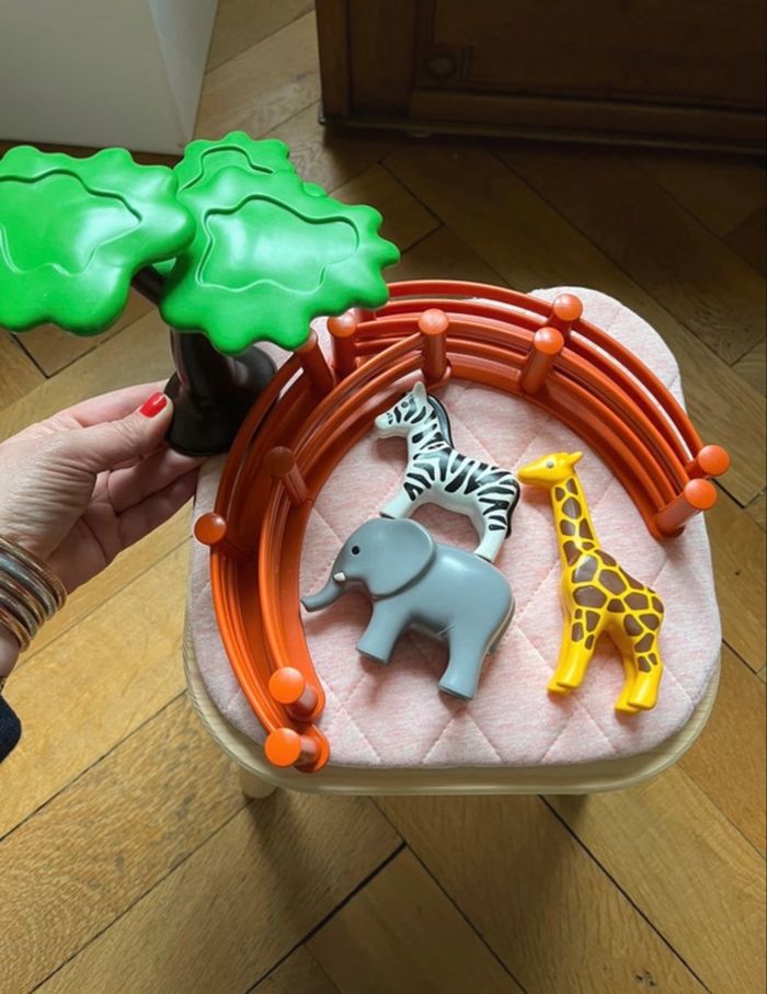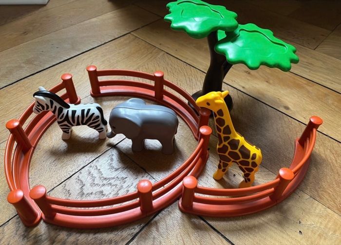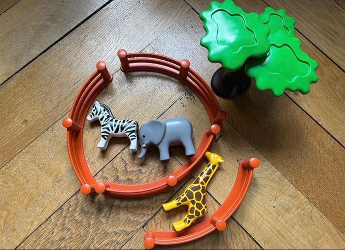Zoo playmobil 123 enclos, arbre,éléphant / zèbre et Girafe très bon état