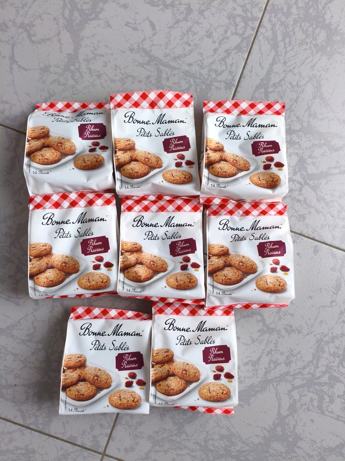 Lot de 8 sachets Bonne maman, petits sablés rhum raisins, neufs, jamais ouverts.