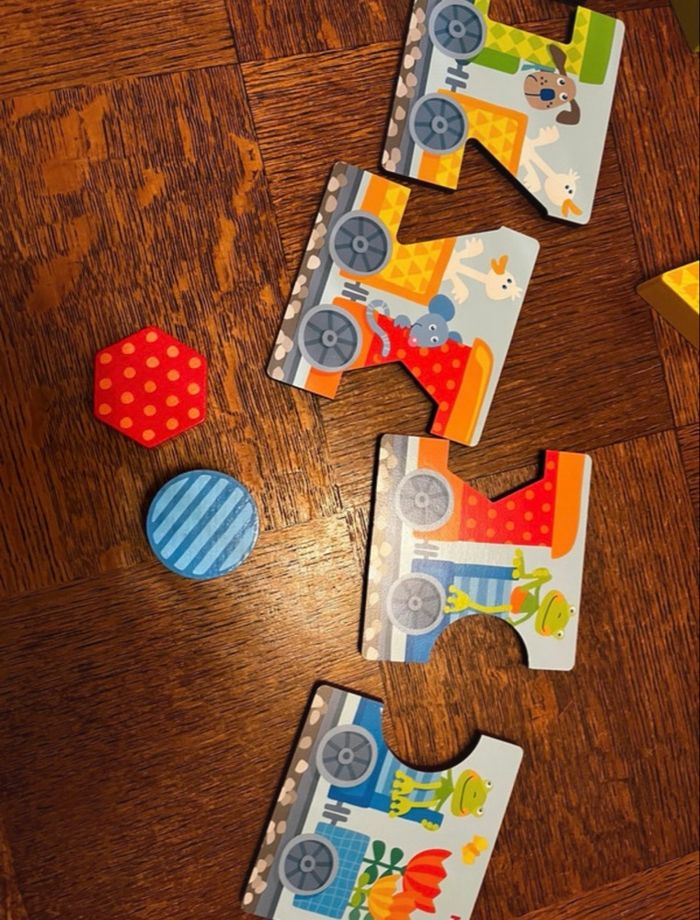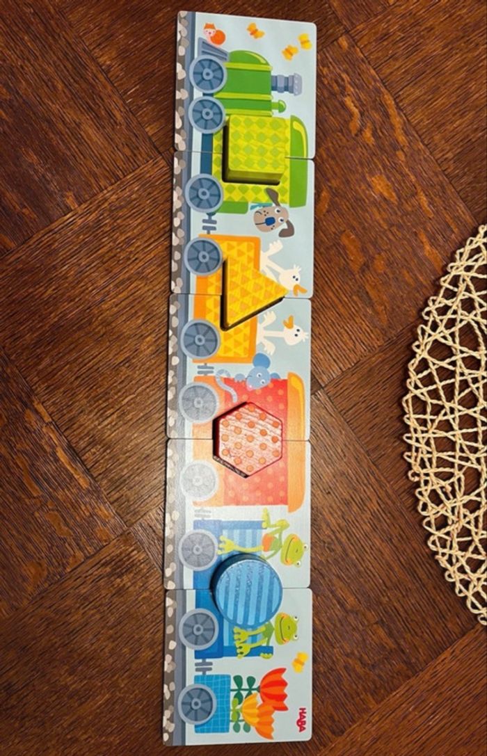 Puzzle en bois Haba Train 5 pieces + 4 formes Préhension fine Couleurs, formes Très bon état