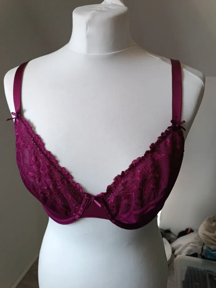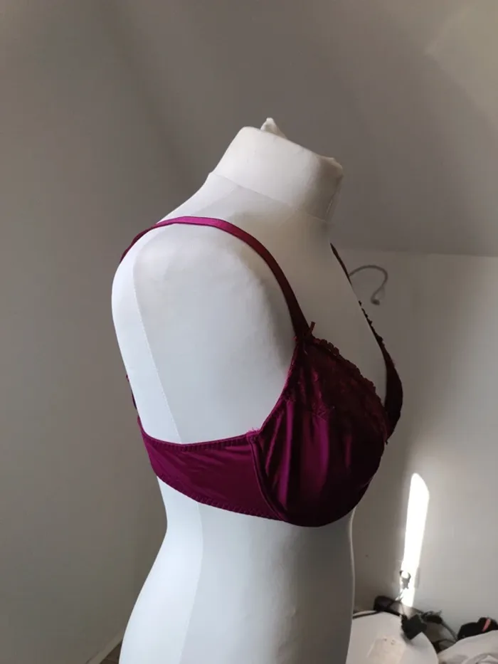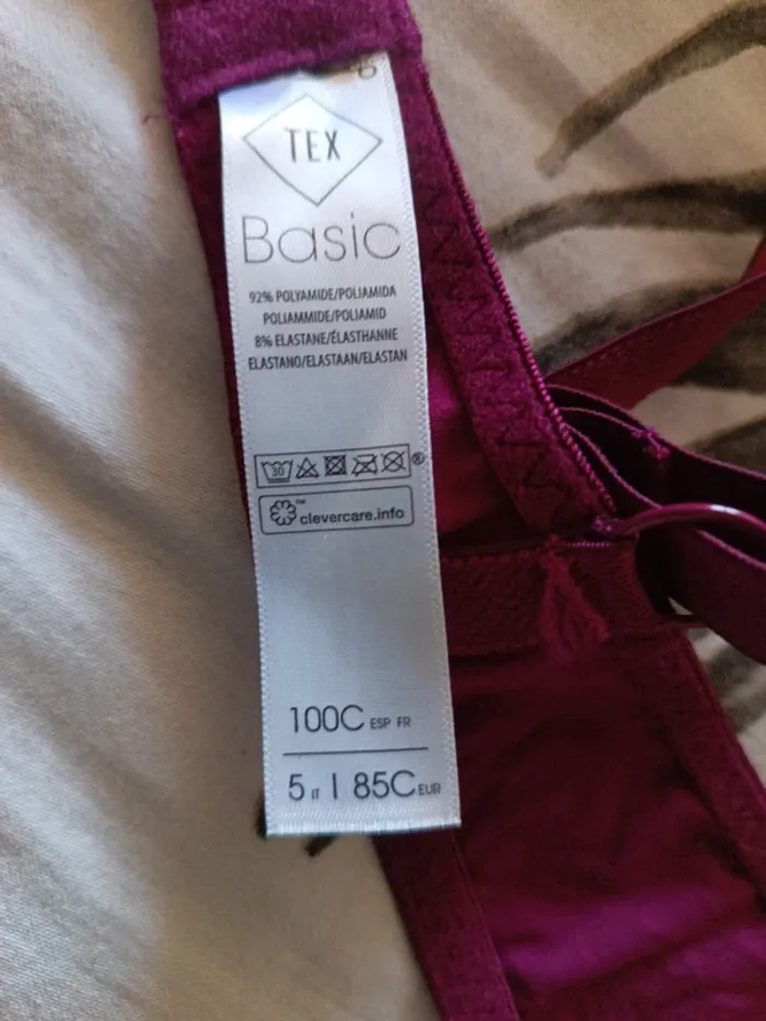 Soutien-gorge bordeaux TEX 100C. Avec armatures. 92% polyamide. 8% élasthanne. Neuf.