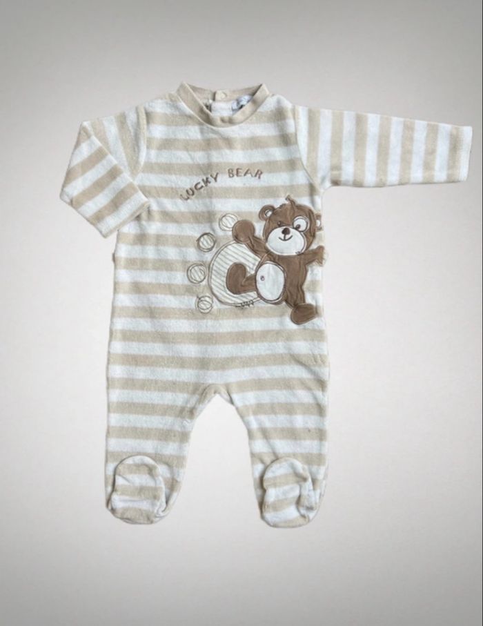 Pyjama Épais - hiver / automne Taille 6 mois / 63-69cm / 8kg Marque petit kimbaloo Garçon Motif ourson « lucky bear » Boutons pression derrière Très peu porté - pas de défaut Prix de revente : 4€ 🏷️ offre du moment = si 1 pyjama acheté le 2e est à -50% (demandez un lot et attendez l’offre)