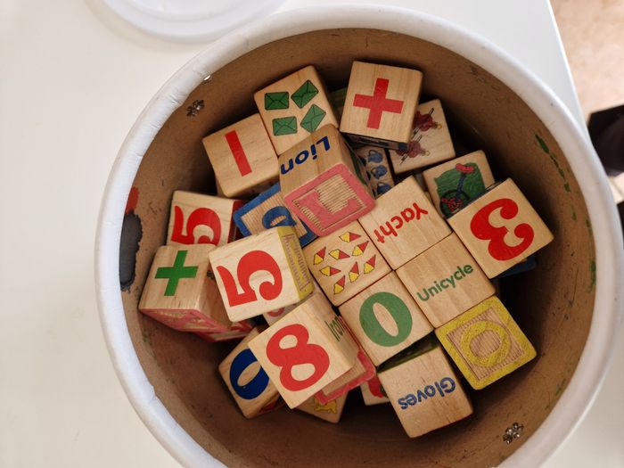 vends une boite de 60 cubes en bois chiffres et lettres trés bon état , il y a juste la boite qui est un peu abimé je vends d'autres jouets et autres, n'hésitez pas à me demander si besoin