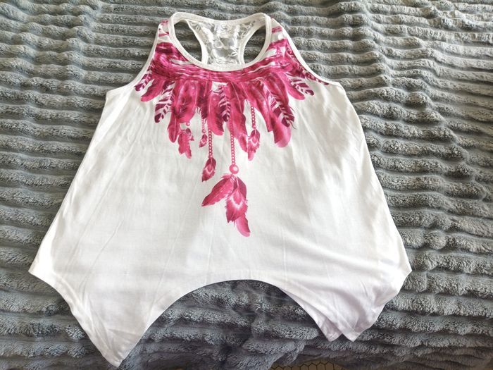 Débardeur bleu plume rose dentelle dans le dos  dressfo XL - photo numéro 1