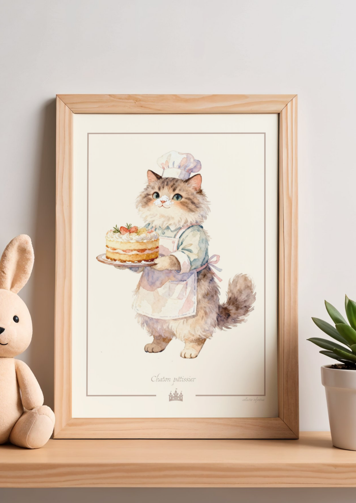 Bonjour, Je vends cette très jolie impression pour enfants (vendue SANS cadre). Il s'agit d'une illustration inspirée par les affiches naturalistes anciennes et les illustrations pour enfants du début du XXème siècle représentant un joli chaton pâtissier (au format A4 21x29.7cm). Cette illustration fait partie de notre "collectio infantiae" (collection des enfants). Les formats A3 (plus grand, 29.7x42cm) et A5 (plus petit, 14.8x21cm) sont aussi disponibles, me demander si vous êtes intéressé ! 😊 Le papier est velouté, d'une belle et subtile couleur ivoire, de qualité musée et épais (270g). Très chic pour faire un mur de cadres élégant (j'ai d'autres affiches pour enfants mais aussi pour adultes dans une esthétique vintage, naturaliste ou même ésotérique) ! Les affiches sont envoyées dans une enveloppe protégée, bien à plat. Veuillez noter que les couleurs et nuances peuvent légèrement varier entre ce que vous voyez sur votre écran et la réalité. Cela est dû au fait que chaque écran est différent et affiche les images à sa façon. Merci pour votre compréhension ! N'hésitez pas si vous avez des questions. 😁 #naturaliste #cabinetdecuriosités #cabinetofcuriosities #etrange #gothique #campagnechic #campagne #anatomie #decorationvintage #reproduction #entomologie #art #wicca #lithographie #fleurs #vintage #ancien #campagne #cottage #witchy #cottagecore #oiseau #cotttagecore #victorien #sorciere #alchimie #esoterisme #mythologie #entomologie #naturalisme #mycologie #champignon #alchemy #old #ancient #ange #botanique #fleur #fruit #astrologie #fruit2 #coccinelle #enfant #kid #decorationenfant #animal #cute #mignon