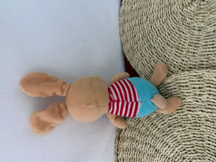 Doudou lapin beige bleu rouge rayé SERGENT MAJOR - photo numéro 4