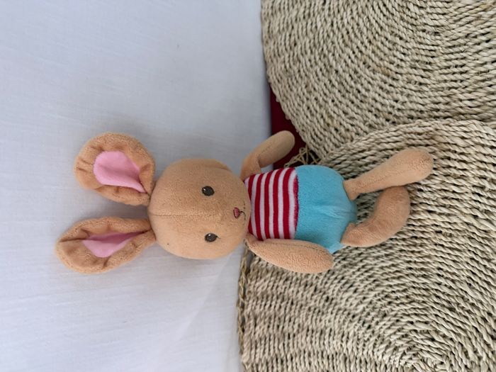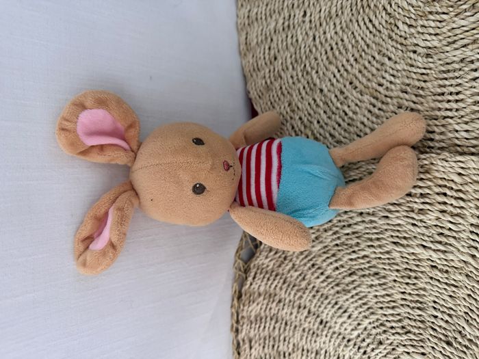 Doudou lapin beige bleu rouge rayé SERGENT MAJOR - photo numéro 1