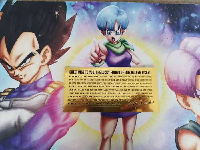 Ticket d'or venant de l'univers Charlie et la Chocolaterie, créé par Roald Dahl Dimensions 15 cm sur 7 cm #BilletLamineauxdragons Oompa Loompa Gene Wilder Johnny Depp Timothée Chalamet collector