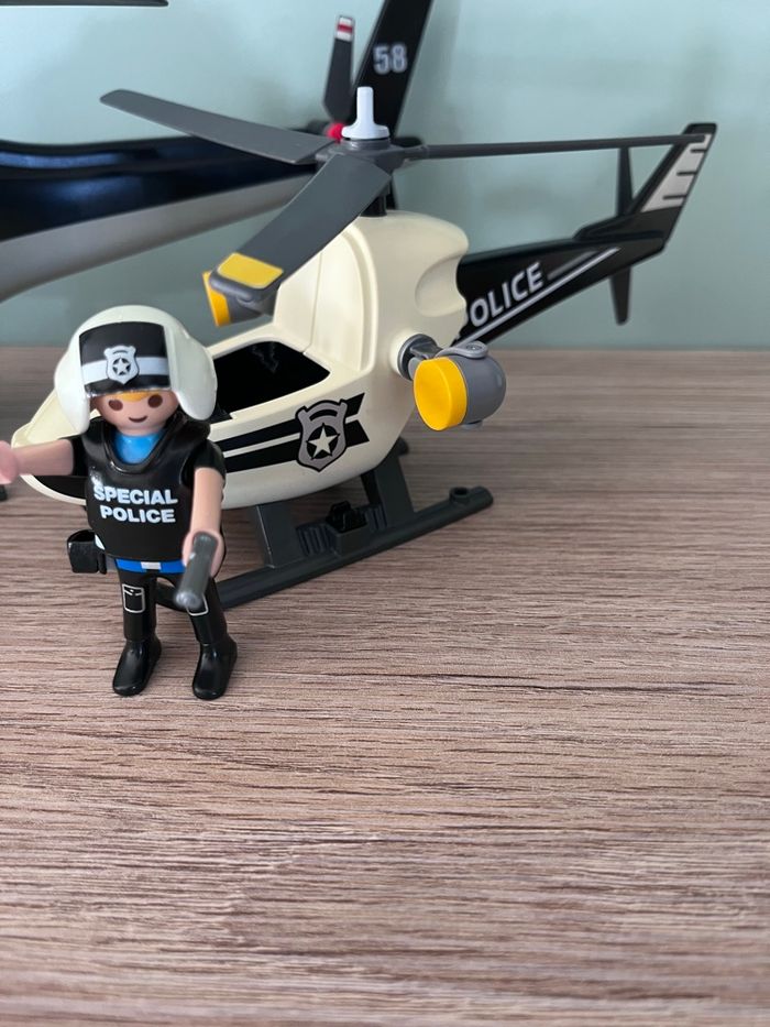 Playmobil 5563 - hélicoptère police 5916 - Hélicoptère monoplace de Police ( un peu jaunâtre)