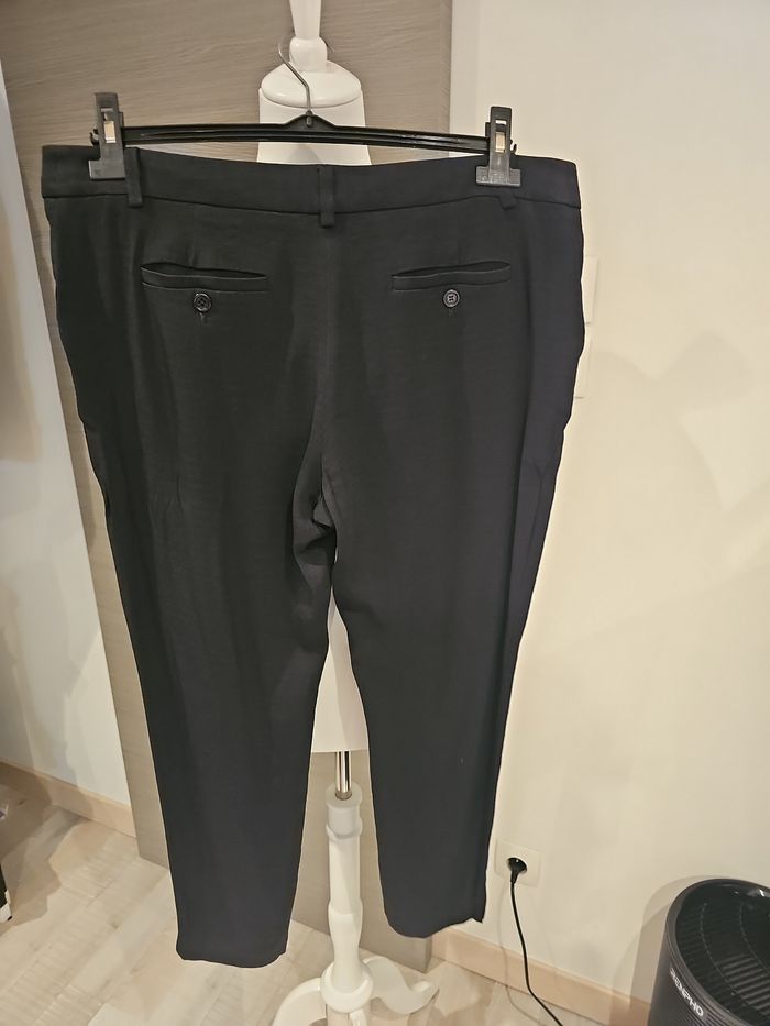 Très beau pantalon noir de la marque Paul & Joe, élégant et intemporel 🖤 Idéal pour une tenue chic, bureau ou habillée. ✔️ Coupe droite élégante ✔️ Matière fluide et confortable ✔️ Taille structurée avec passants ✔️ Poches arrière boutonnées ✔️ Fabrication Made in France 📌 Marque : Paul & Joe 📌 Taille indiquée : 44 ⚠️ Taille petit → correspond plutôt à un 40 FR 📌 Couleur : noir 📌 État : excellent état, très peu porté