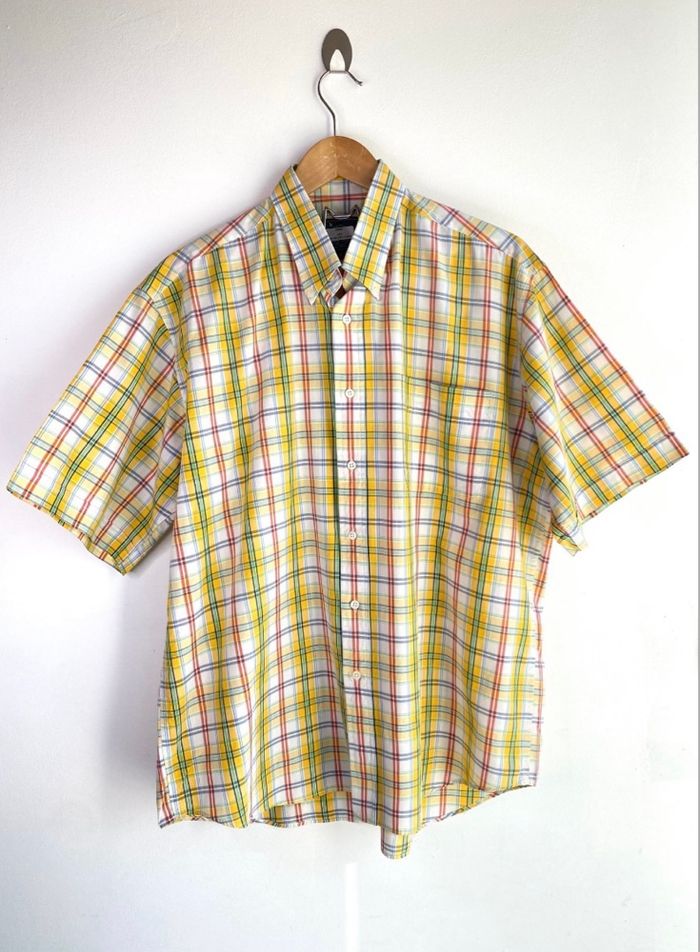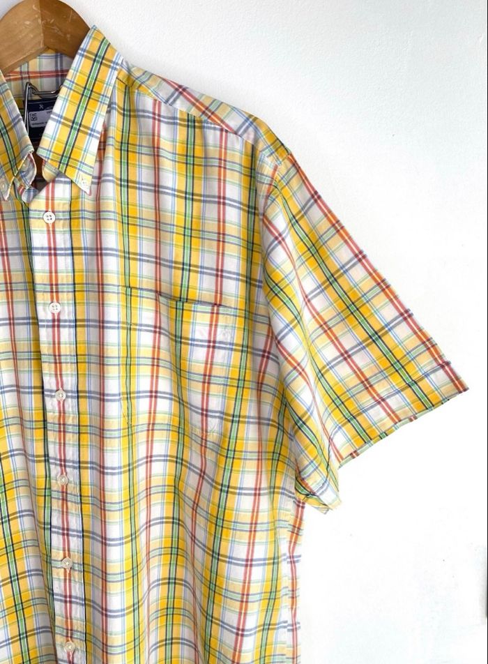 Magnifique chemise a carreaux jaune et blanche pour homme Chemise manches courtes Taille XL 40