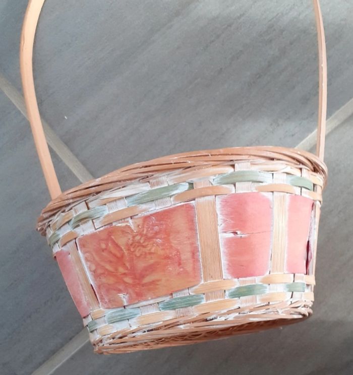 Je vends ce joli panier pour composition florale en bois, parfait pour créer des arrangements floraux ou pour décorer votre intérieur. - Type de produit : Panier pour composition florale - Matière : Bois - Couleur : Multicolore (rose, beige, blanc) - Caractéristiques : Anse en bois, structure en osier tressé, doublure en plastique. Très bon état N'hésitez pas à me contacter pour plus d'informations ou de photos supplémentaires.