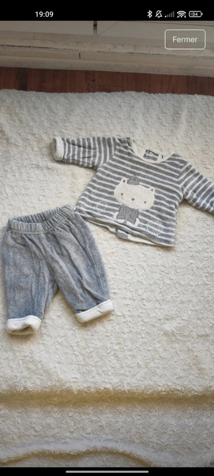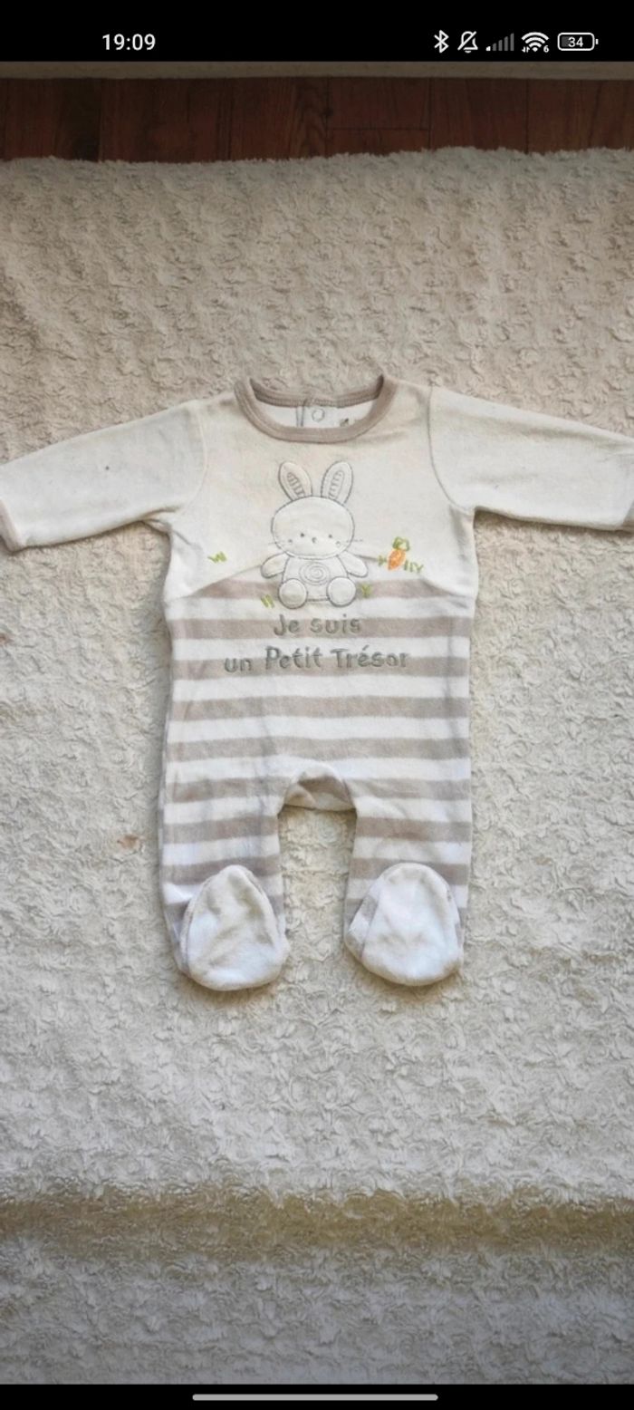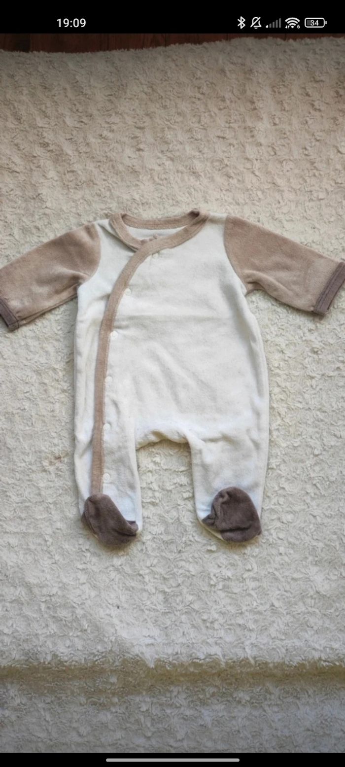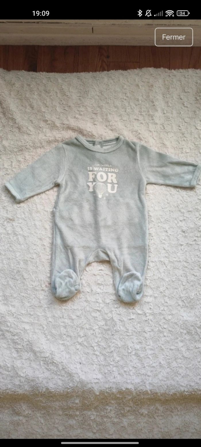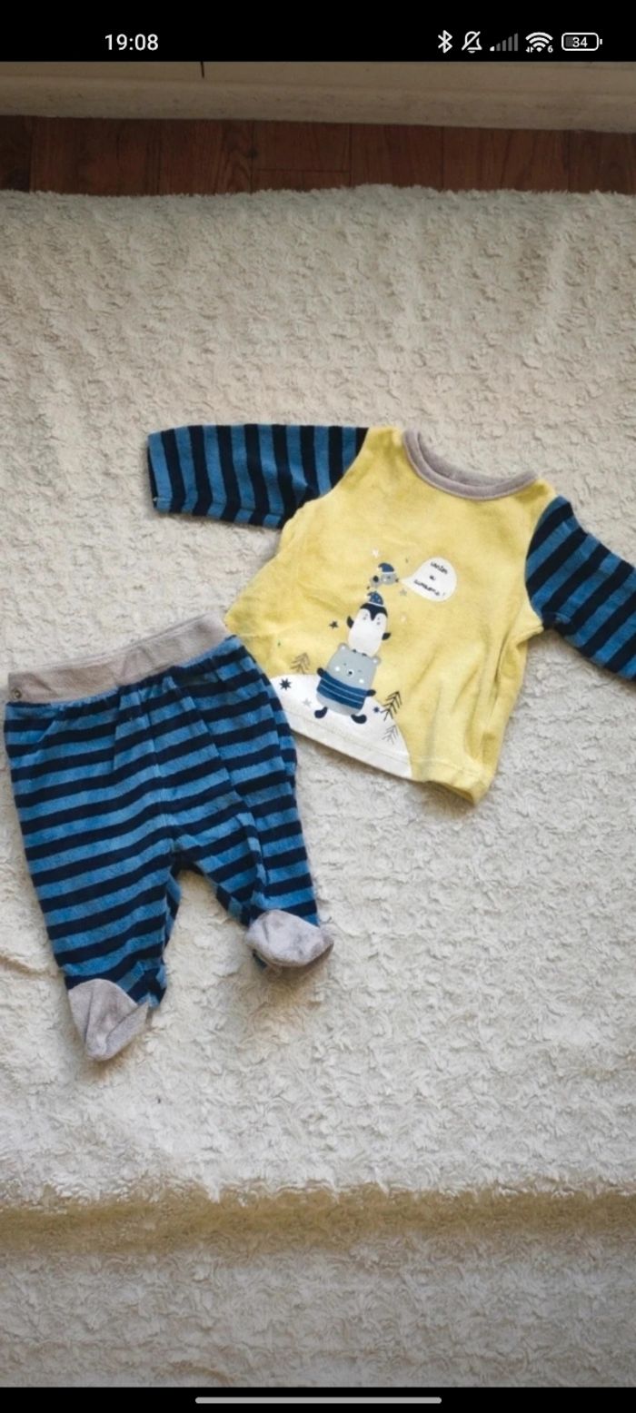 12 articles 1 mois 2 pyjamas Orchestra 3 pyjamas Kiabi 1 pyjama Gémo 2 pyjamas Grain de blé 3 pyjamas sans marques 1 combi-pilote orchestra Certains articles peuvent avoir de légères imperfections Possible de vendre à l'unité 😊 Je n'ai pas pu mettre tout les pyjamas à l'unité en photo.