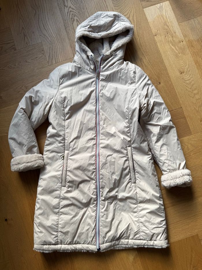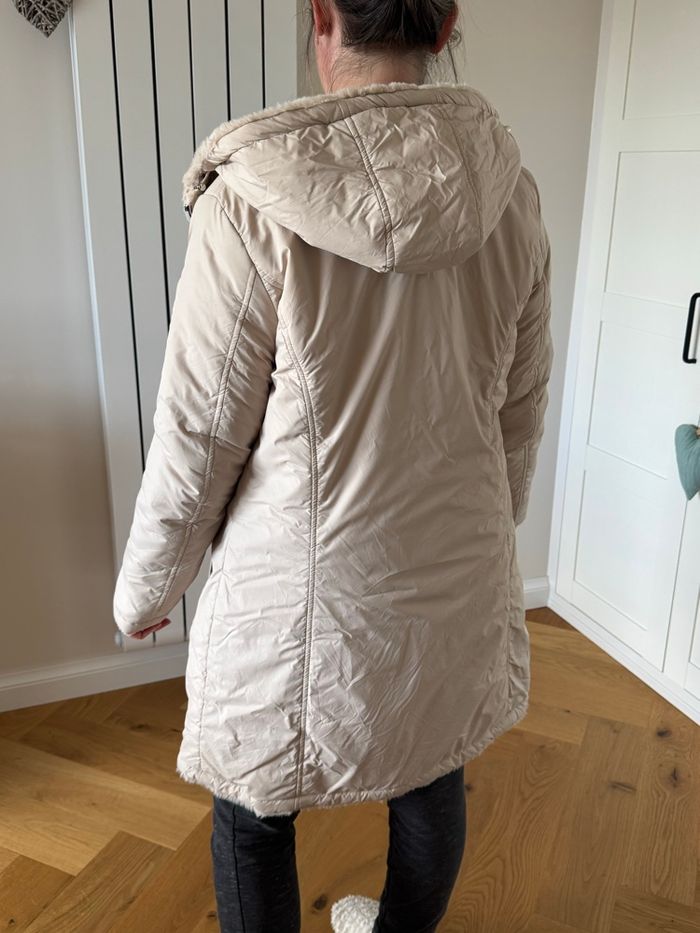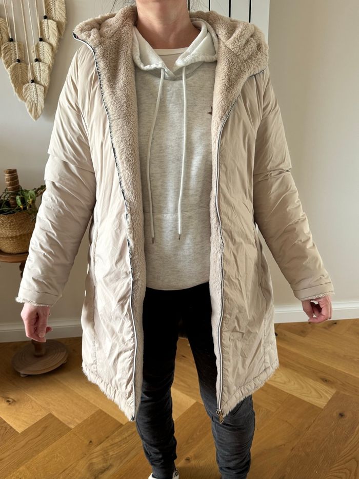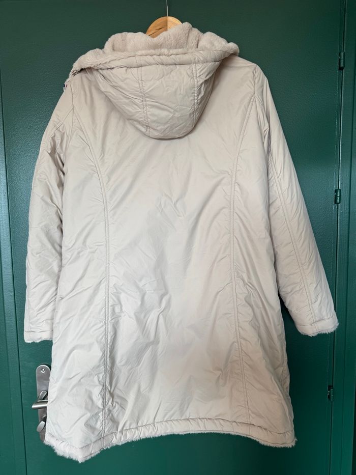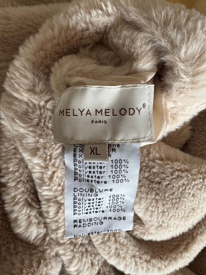 Manteau femme avec capuche Longueur dessus genou Fermé par une fermeture éclair 2 poches extérieures zippées et 2 poches intérieures Entièrement doublé très chaud Marque Melya Melody Taille XL, mais un petit 42 Tres bon état, porté à peine une saison