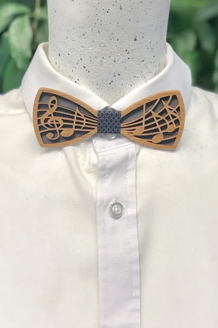 Nœud papillon artisanal en bois de merisier – Notes de musique – Esprit festif & original