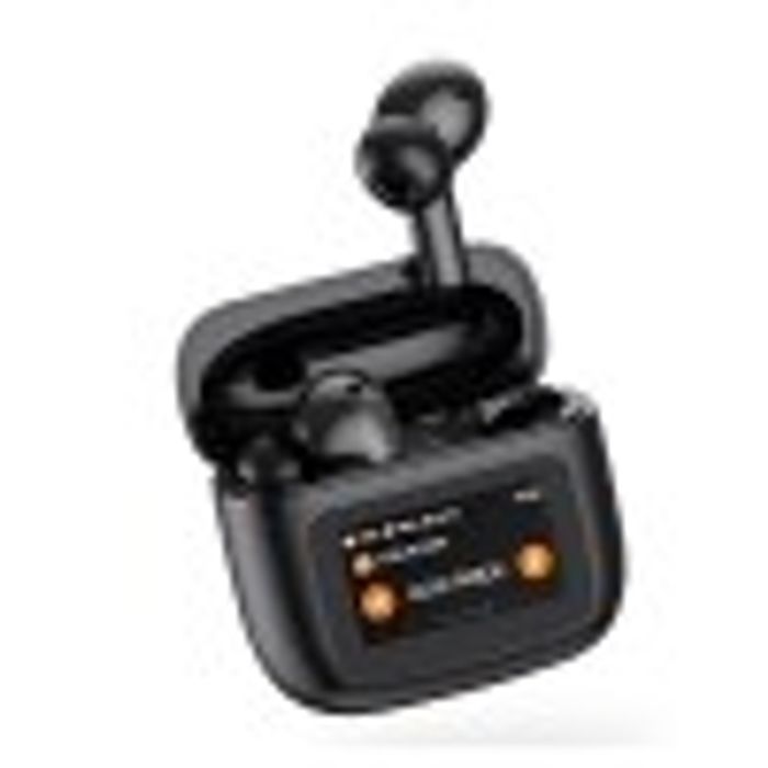 Écouteurs anti bruit (ANC) avec écran de charge.