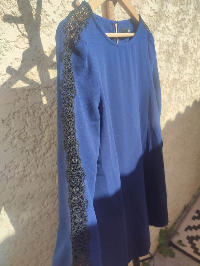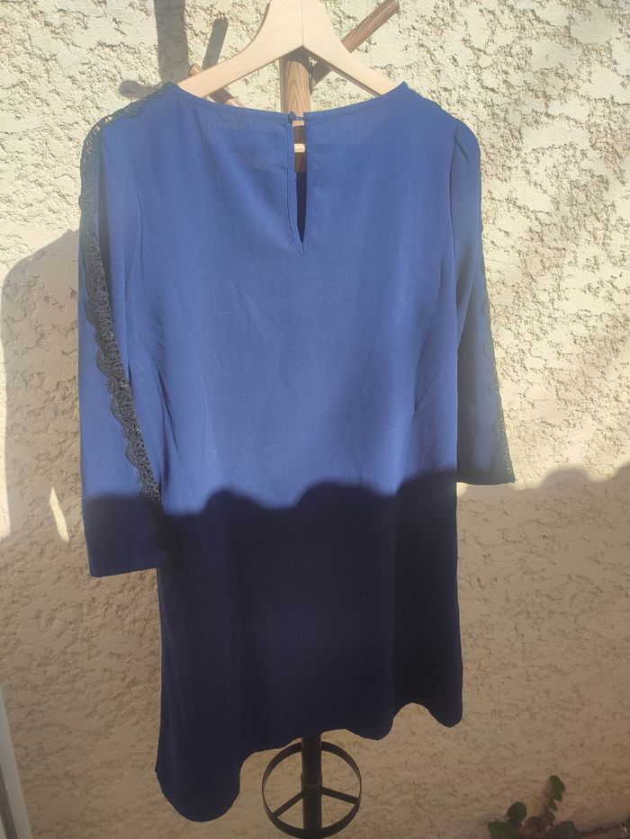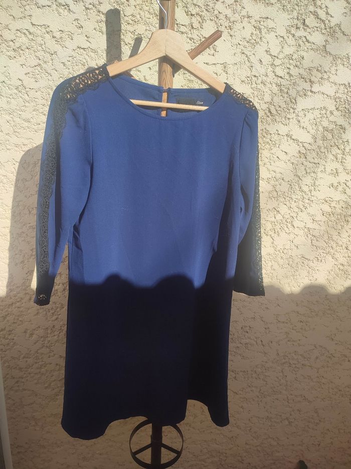 Je vends cette robe Etam bleu roi avec détails en dentelle. Une pièce élégante et polyvalente, parfaite pour vos occasions du quotidien ou plus habillées. - Type de produit : Robe - Marque : Etam - Taille : 38 - Couleur : Bleu ciel et noir - Caractéristiques : Manches 3/4, Détails dentelle aux manches, Col rond N'hésitez pas à me contacter pour plus d'informations ou de photos.