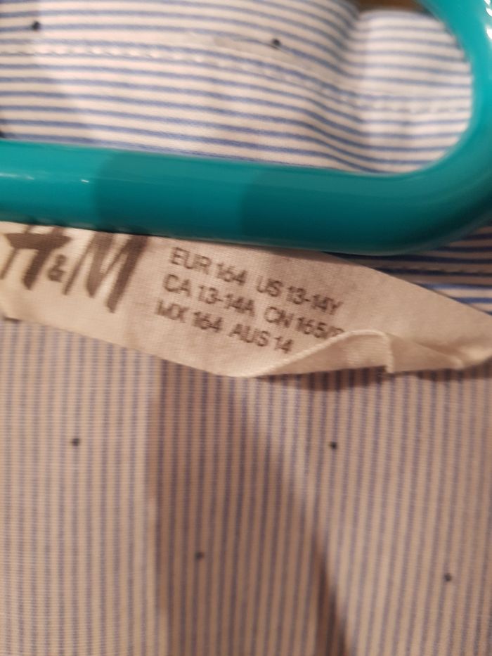 Chemise rayée bleu clair. Taille 13-14 ans