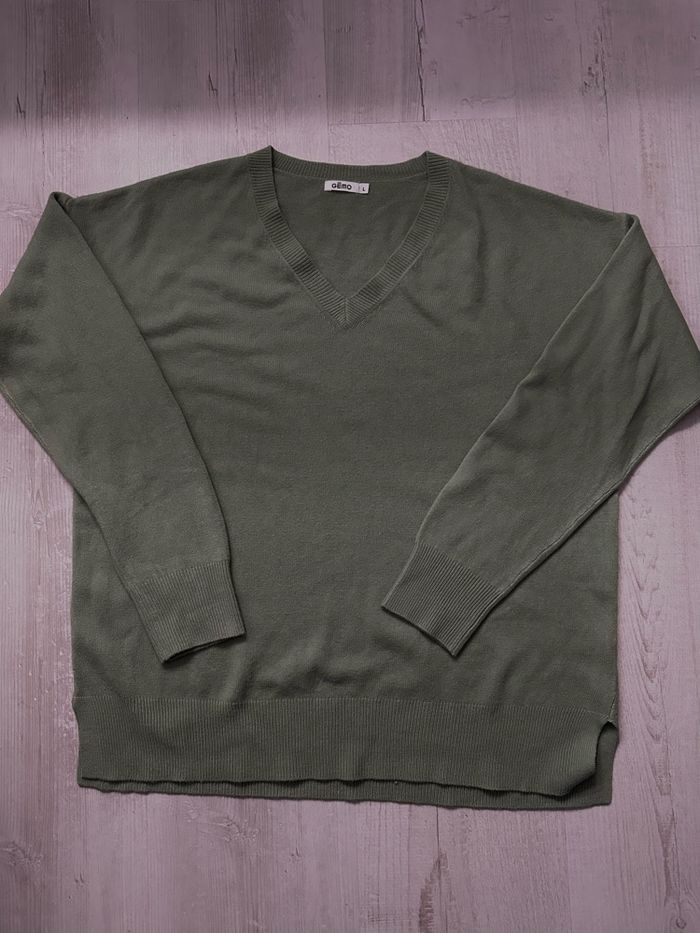 Pull col V vert kaki (Gemo, Taille M) - photo numéro 1