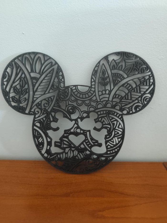 🖤✨ Romance Disney en dentelle ! ✨🖤 Voici une œuvre d’une finesse incroyable : la silhouette de Mickey entièrement décorée de motifs floraux et géométriques façon mandala, avec au centre une scène d’amour tendre entre Mickey et Minnie se tenant par la main au-dessus d’un cœur ❤️ 🎨 Découpe laser ultra-détaillée 📏 Taille 18 cm de large 15 cm de haut 🖤 Noir élégant, parfait pour tous les styles de déco 🌸 Mélange parfait entre art floral et univers Disney 🏡 Idéal pour une chambre, un bureau ou un salon Une création artistique qui allie romantisme, magie et raffinement ✨ #DisneyLover #ArtDécoupé #MickeyEtMinnie #LoveMagic #DécorationUnique #InspirationMandala Impression 3D 122